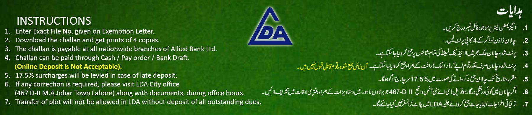 DOWNLOAD LDA CITY CHALLAN (7TH INSTALLMENT OF DEVELOPMENT CHARGES)