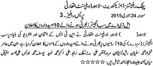 LDA has declared the names of 10 candidates who had been appointed against 10 post of sub-engineer.
