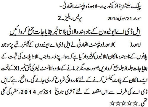 Lahore Development Authority has warned, Default allotees of LDA Avenue-I, to deposit their remaining dues without further delay.