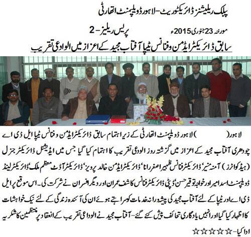 Farewell ceremony in honor of AFTAAB MAJEED, the former Director Admin and Finance TEPA.