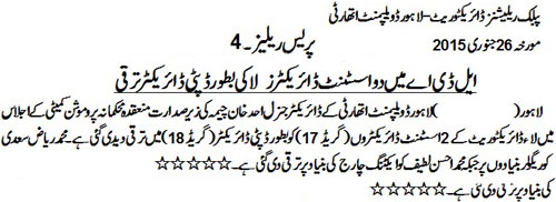 DG-LDA has promoted 2 ADs of Law Directorate, working in BS-17, as Deputy Director in BS-18.