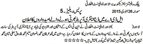 LDA has declared the names of candidates who have been appointed against 7 post of DEO (BS-10).