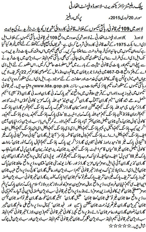 LDA initiate legal action against 109 illegal housing schemes in Lahore