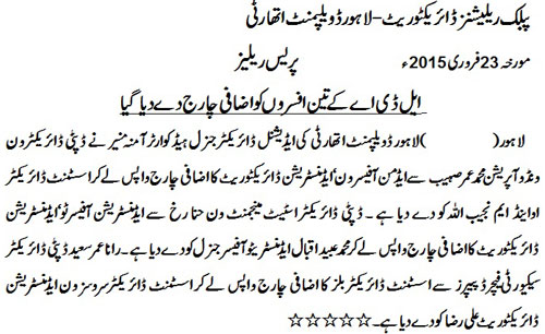 ADG (HQ) LDA has entrusted additional charge of various posts to three officers.