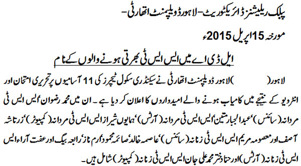 LDA notified names of newly recruited 11 Secondary School Teachers