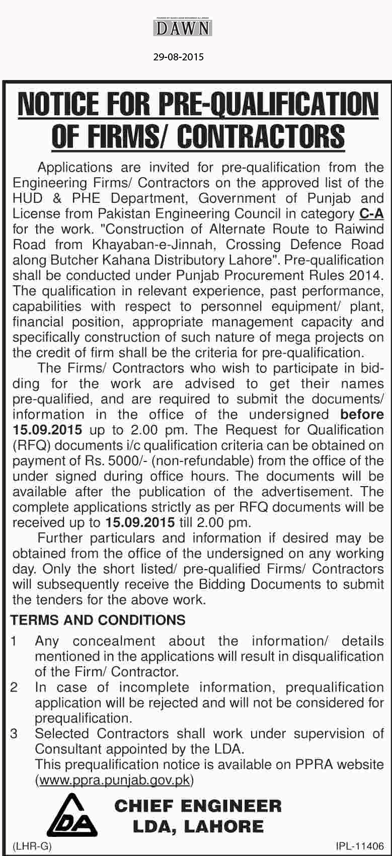 Notice For Pre-Qualification Of Firms/Contractors(DAWN)