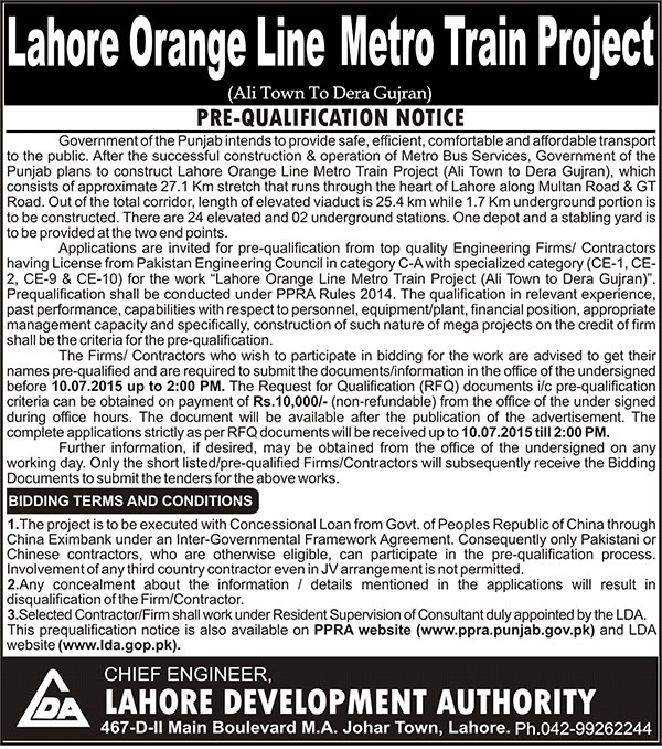 LAHORE ORANGE LINE METRO TRAIN PROJECT