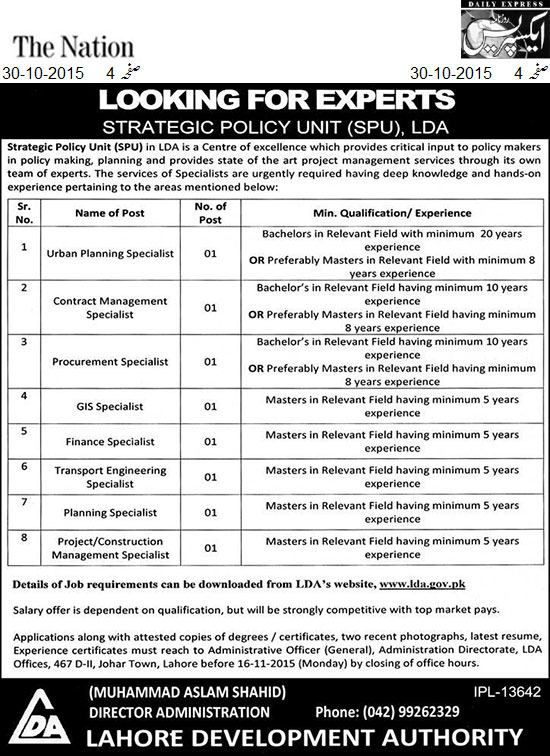 Looking for Experts, Strategic Policy Unit (SPU), LDA.