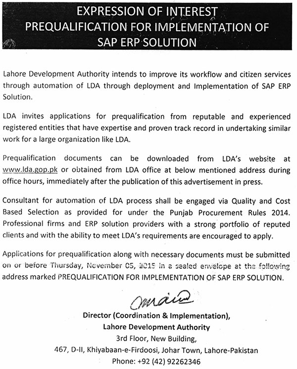 Expression of Interest Prequalification for Implementation of SAP ERP Solution