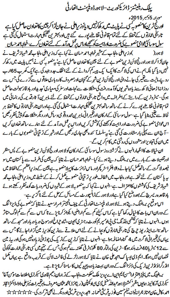 Kh Ahmad Hassan Urges Civil Society to Cooperate in executing Orange Line Train Project.