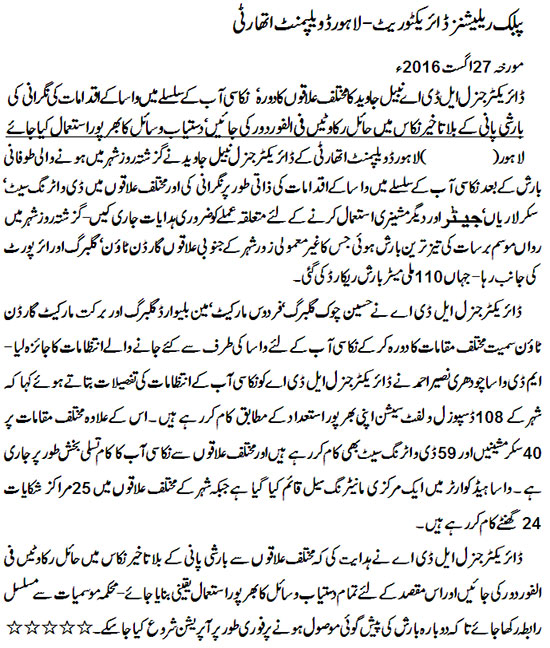DG LDA personally supervised the post rain operation of WASA for disposal of storm water