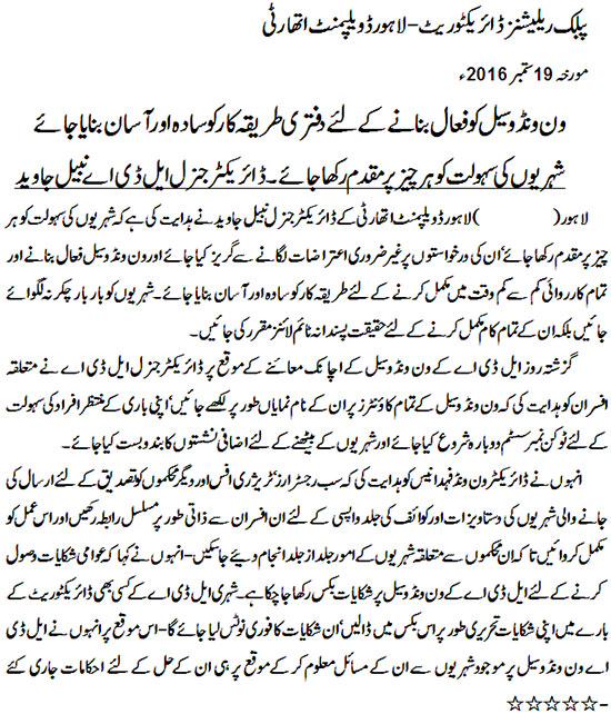 DG LDA has directed for simplifying various Standard Operating Procedures (SOPs) at One Window Cell.