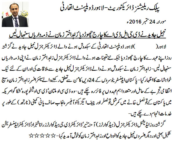 The newly appointed DG LDA Zahid Akhtar Zaman assumed responsibilities