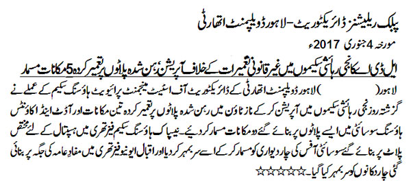 Staff of Estate Management Directorate Private Housing Scheme of LDA demolished illegally constructed houses