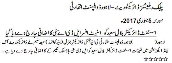MS. Samia Saleem has entrusted the additional charge of the post of Estate Officer.