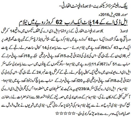 LDA Auctioned 14 Plots