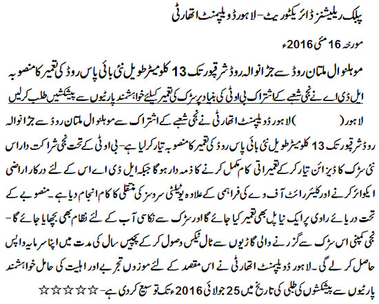LDA has planned to construct a 13 kilometers long road from Mohlanwal, Multan Road...