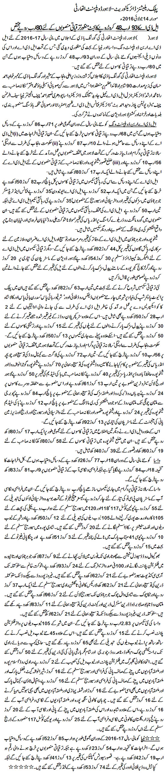 Development Projects of LDA.