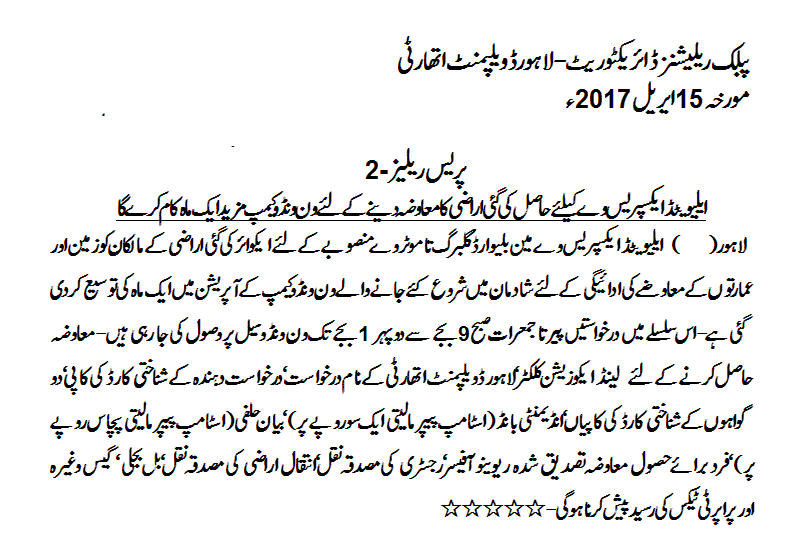 OWC will facilitate the application for Compensation of land for Elevated Express