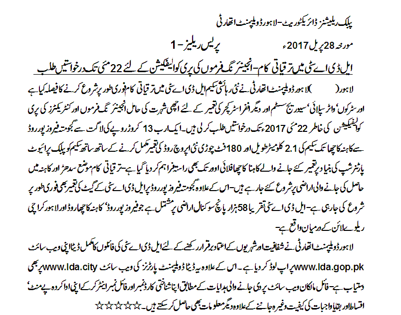 Development Projects of LDA.