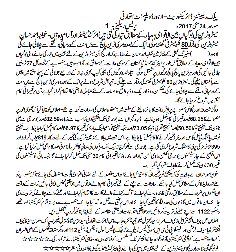 Orange Train: International-standard, air-conditioned and comfortable coaches, which are compatible with Pakistani weather conditions