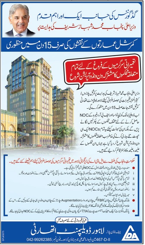 3. Integrated one Window System of LDA where owner can obtain all related NOCs (WASA, TEPA, FBR etc.) under one roof.