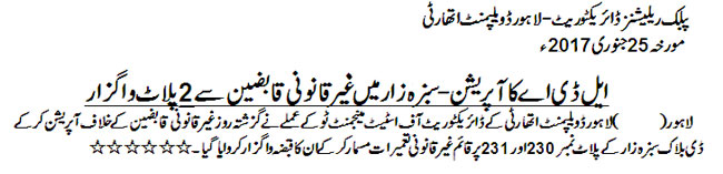 LDA retrieved two plots after demolishing illegal constructions in Sabzazar