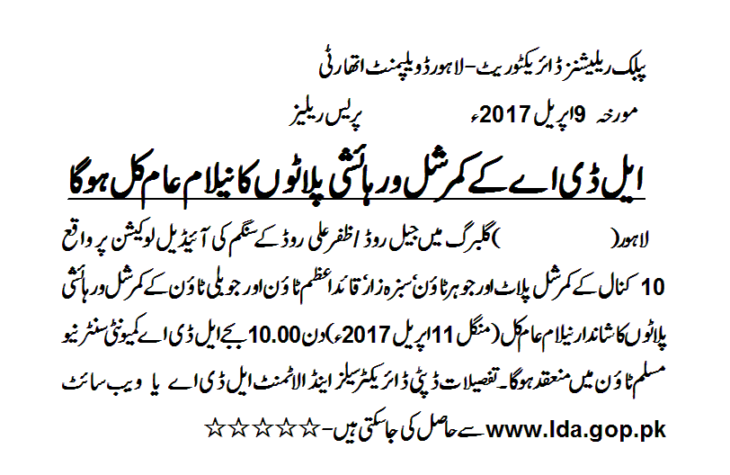 Auction of Residential and Commercial plots in Gulberg / Jail Road