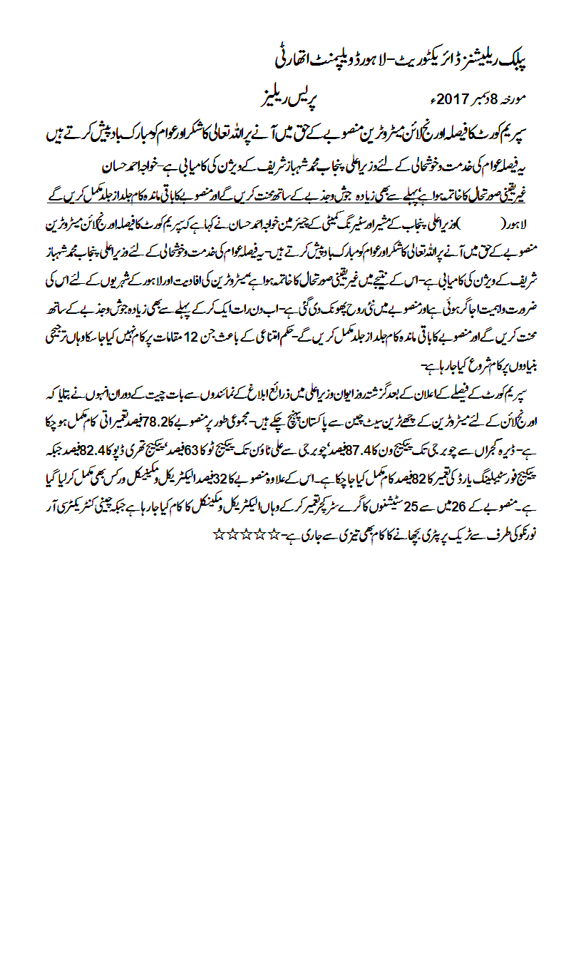We bow our heads in humility before Almighty Allah and are thankful to Him on announcement of a pro-public and pro-project verdict by the honourable Supreme Court of Pakistan
