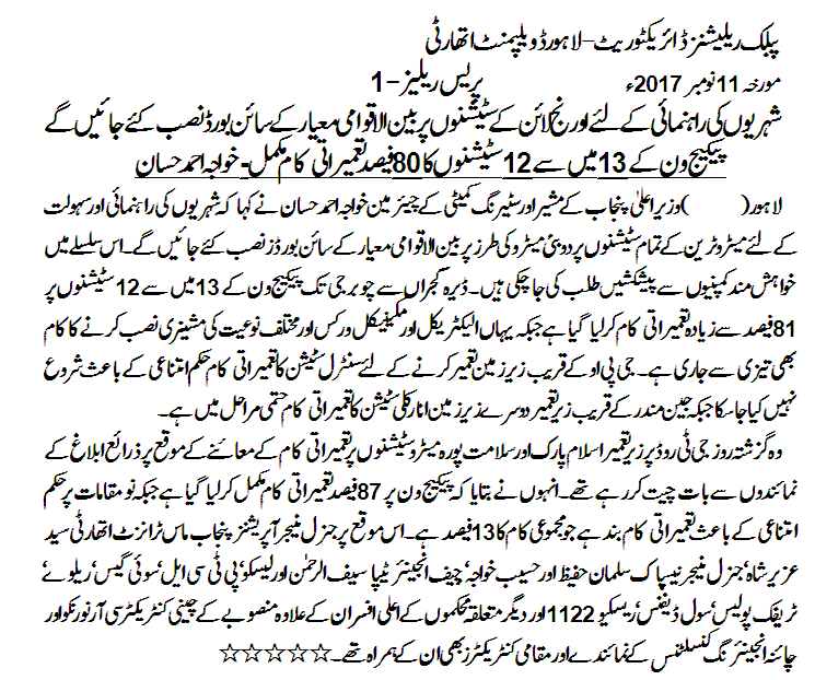 International standard sign boards will be installed at the Orange Line stations to guide citizens