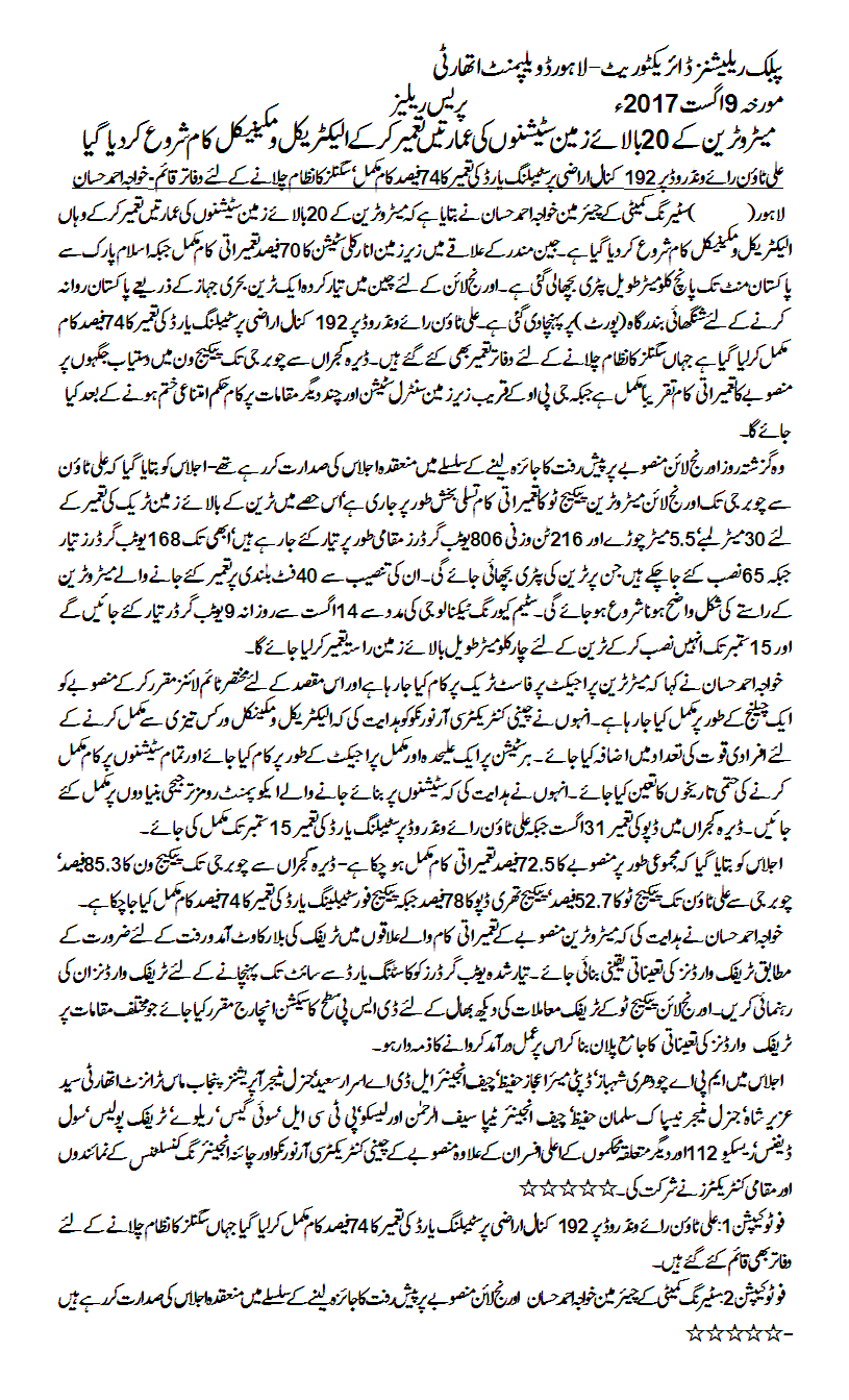 Grey structures of 20 out of the 24 elevated stations of Lahore Orange Line Metro Train have been handed over to Chinese contractor
