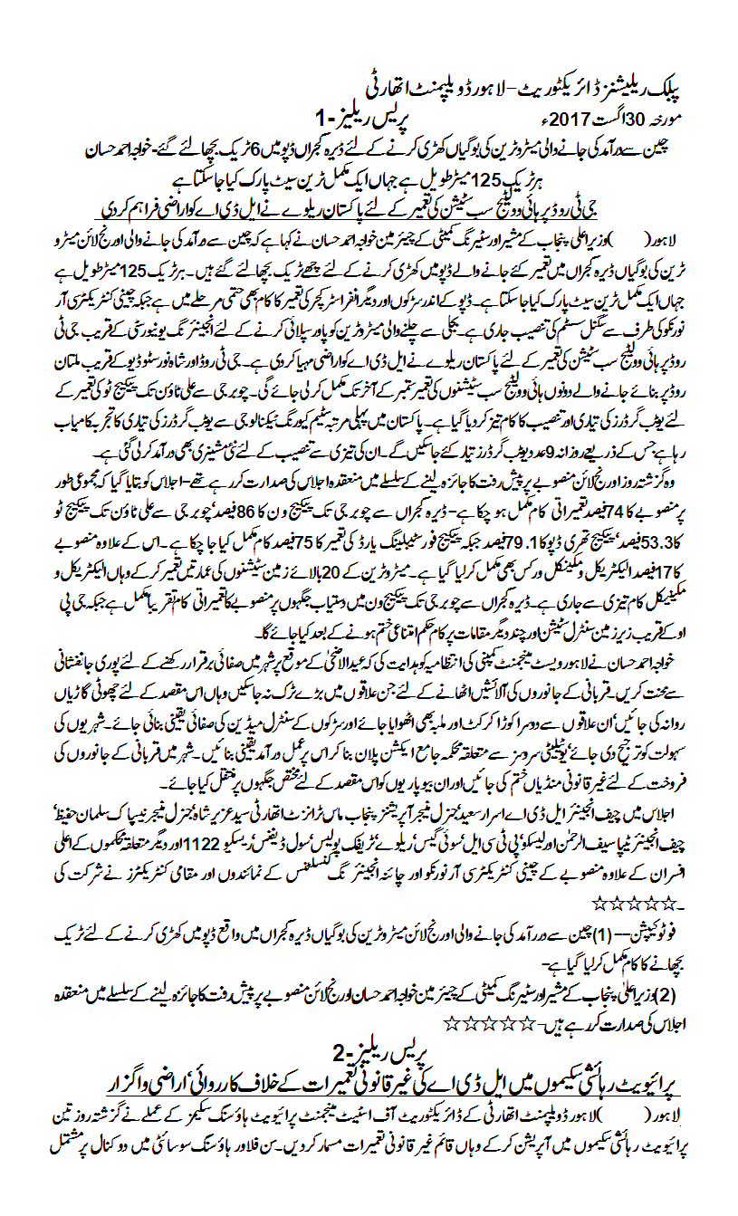 Six tracks, each measuring 125 meters, have been laid at Depot near Dera Gujjran for parking coaches