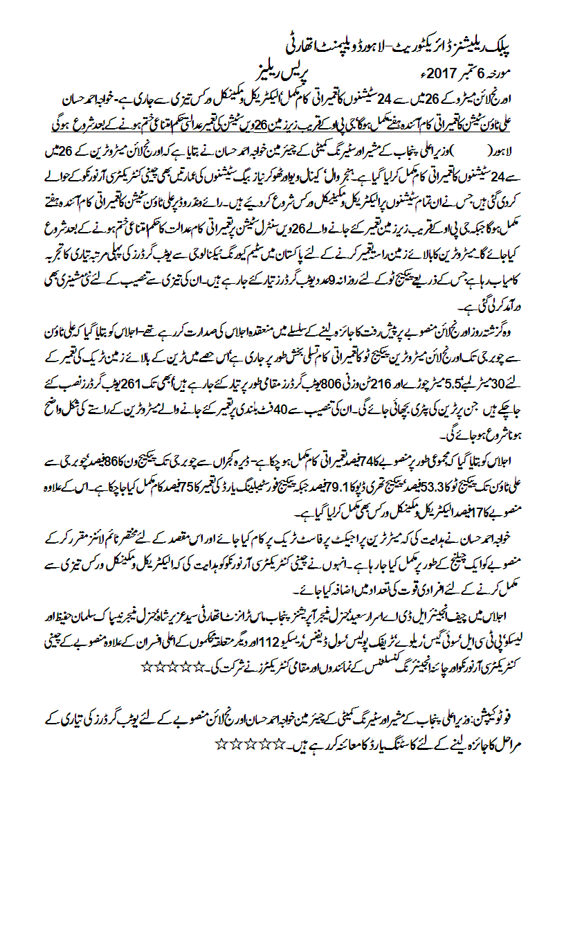 Gray structures of 24 out of the 26 stations of Lahore Orange Line Metro Train Project has been completed
