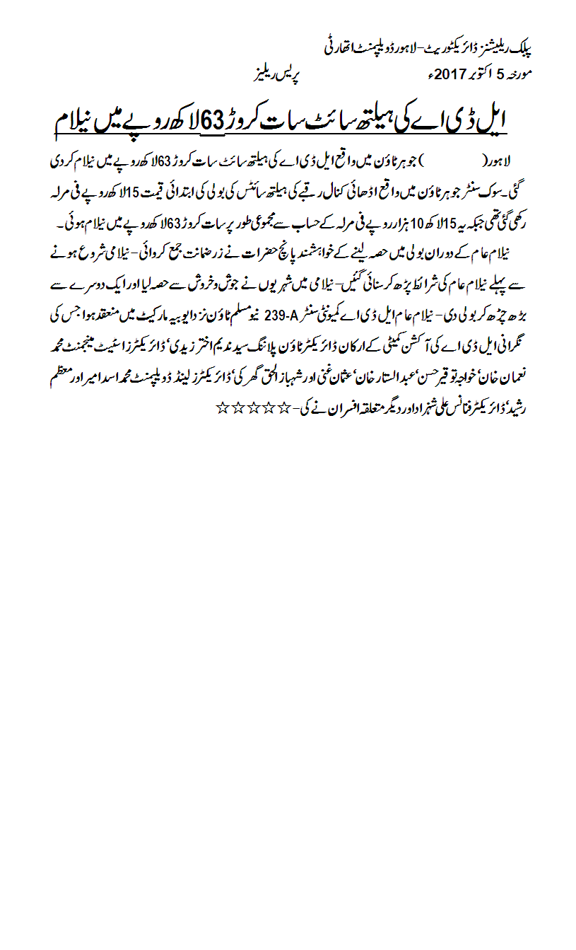 LDA Office M.A Johar Town Lahore.