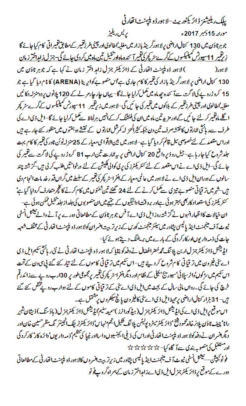 Development Projects of LDA.