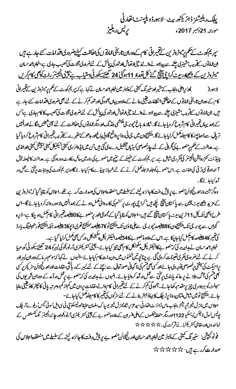 In line with the directions by the Supreme Court of Pakistan all possible arrangements were being made for conservation of the 11 historical buildings