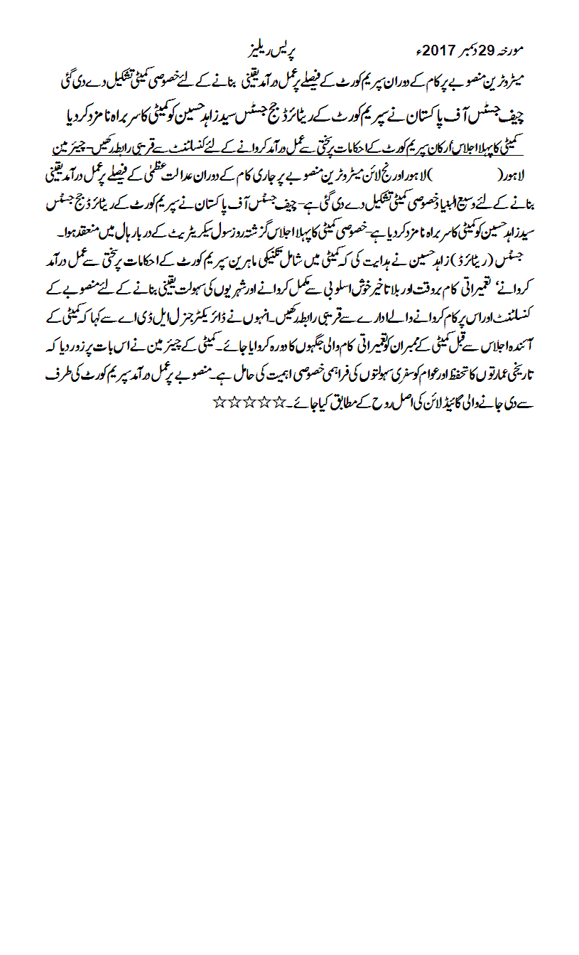 The Hon’ble Supreme Court of Pakistan allowed the Government of the Punjab for the construction of Lahore Orange Line Metro