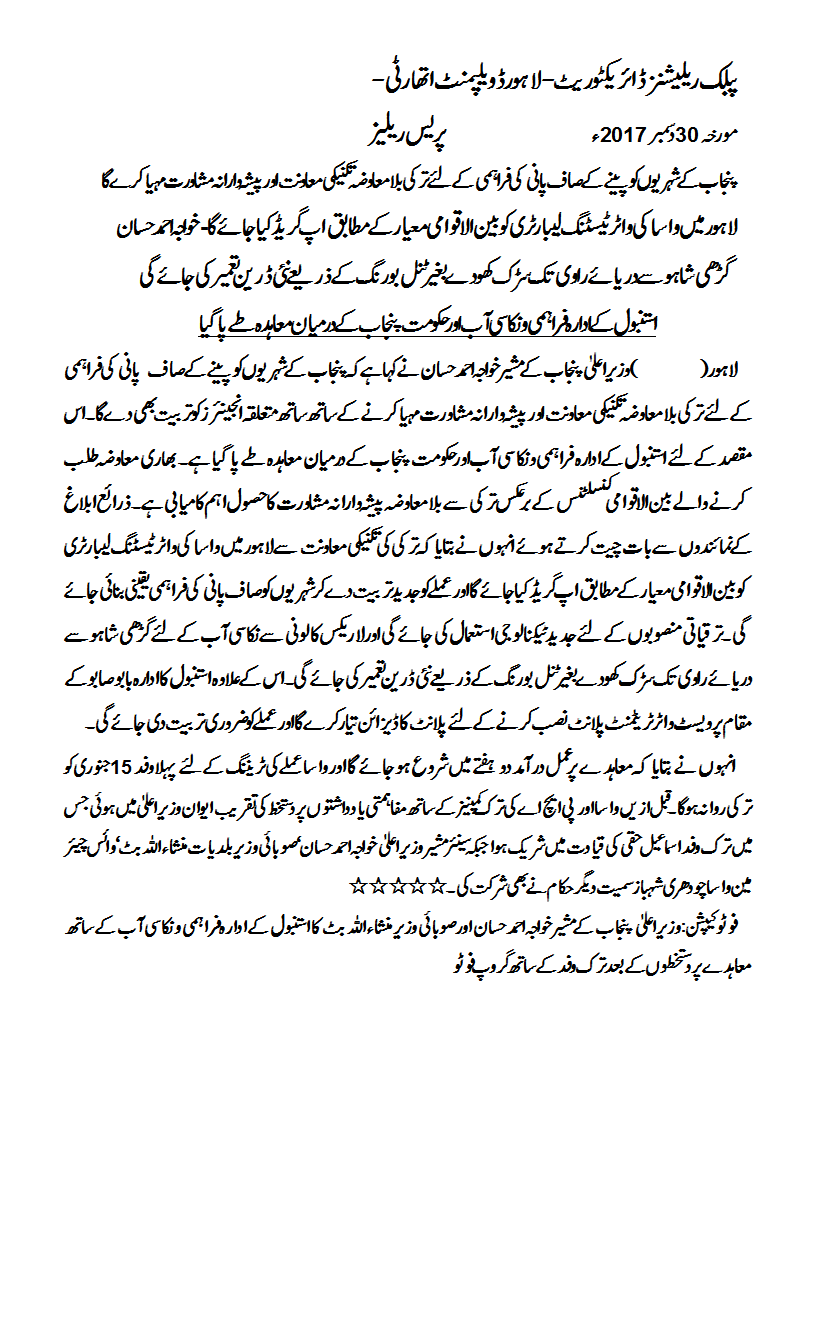 Provides technical assistance and professional advice from Turkey to supply clean drinking water to Punjab citizens