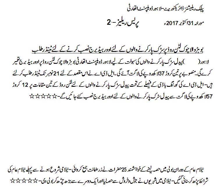 Seeking tender to install overhead bridge for road crossers on Bohar Chowk Road