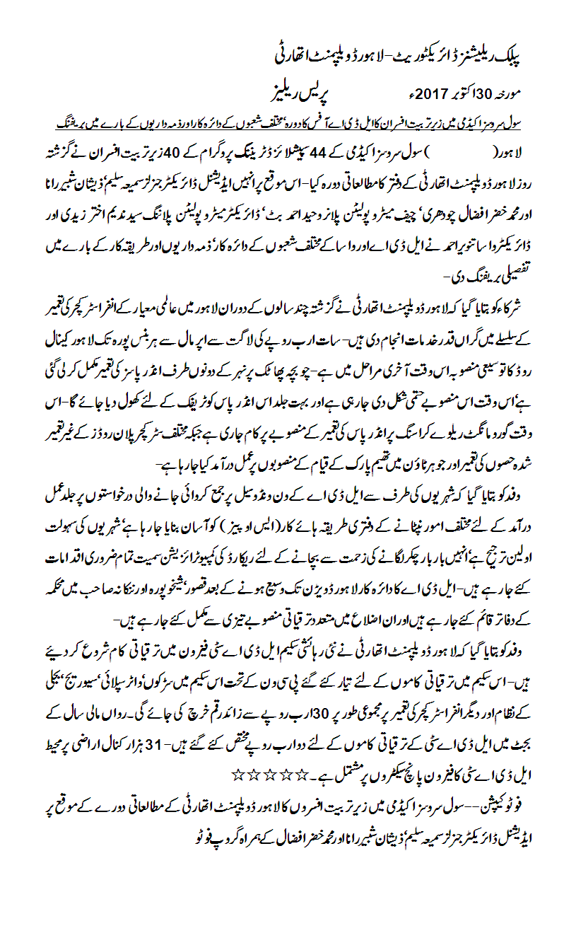 Development Projects of LDA.