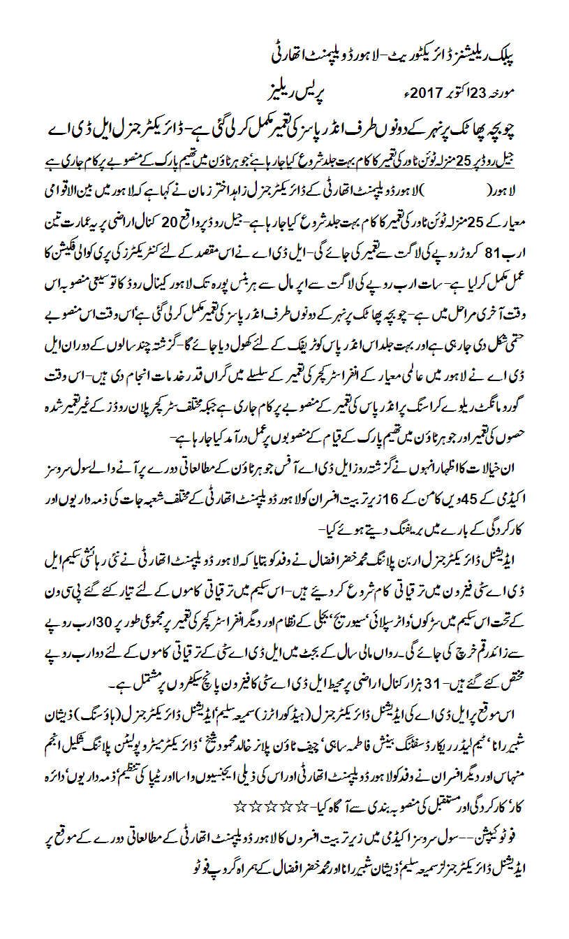 Chubbacha Gate, construction of underpass on both side of the canal has been completed - Director General LDA