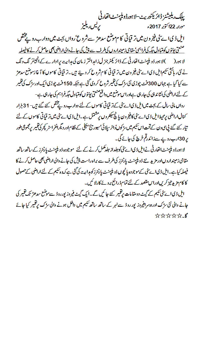 Lahore Development Authority has launched development works for setting up basic infrastructure in its new housing scheme LDA City.