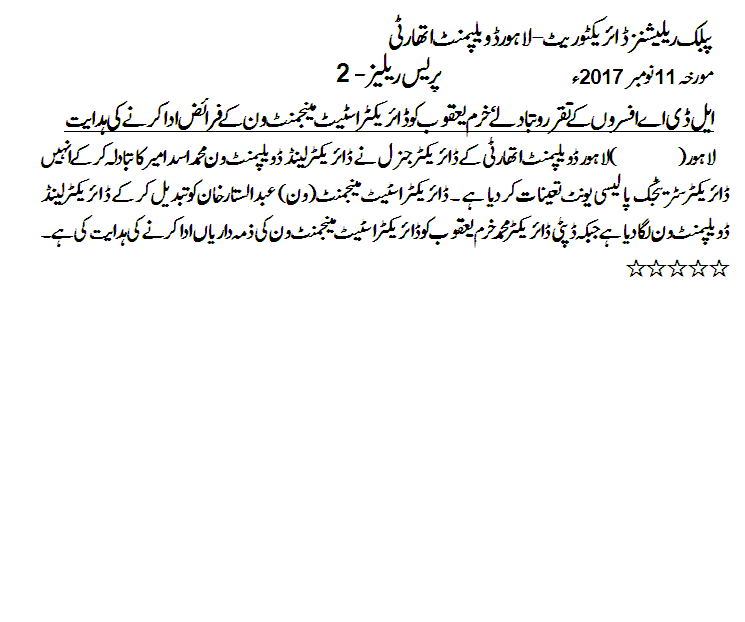 Appointment and Transfer Of LDA Officers