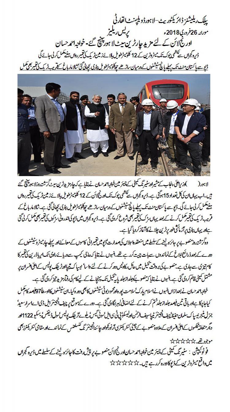 Four sets of Orange Train Project reached Lahore