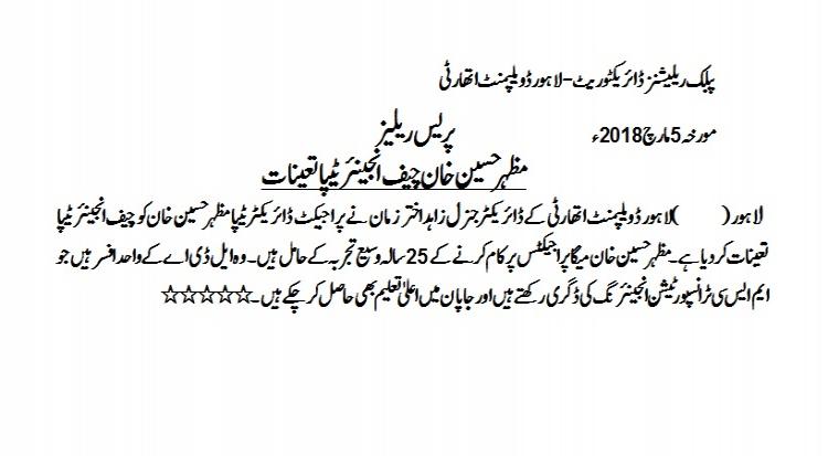 Mazhar Hussain Khan appointed as Chief Engineer Tepa.