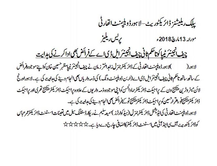 DG LDA gave the responsibilities of LDA Chief enginier to cheif enginier tepa.