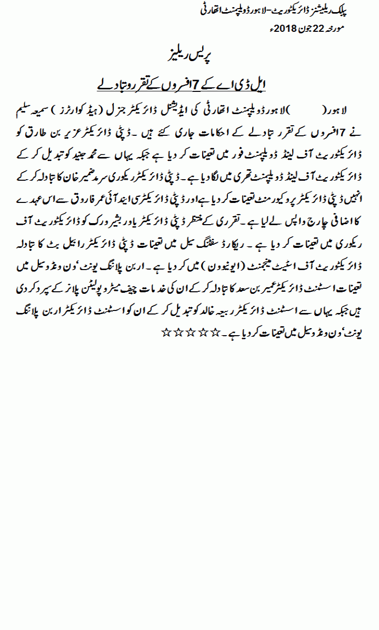 Appointment and Transfers of LDA Officers.