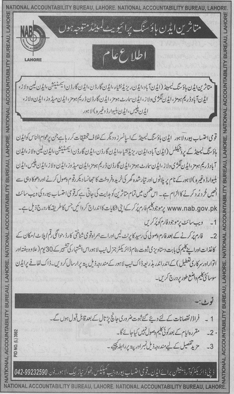 Eligible Applicants of 3rd Ballot for computerized plot allocatio