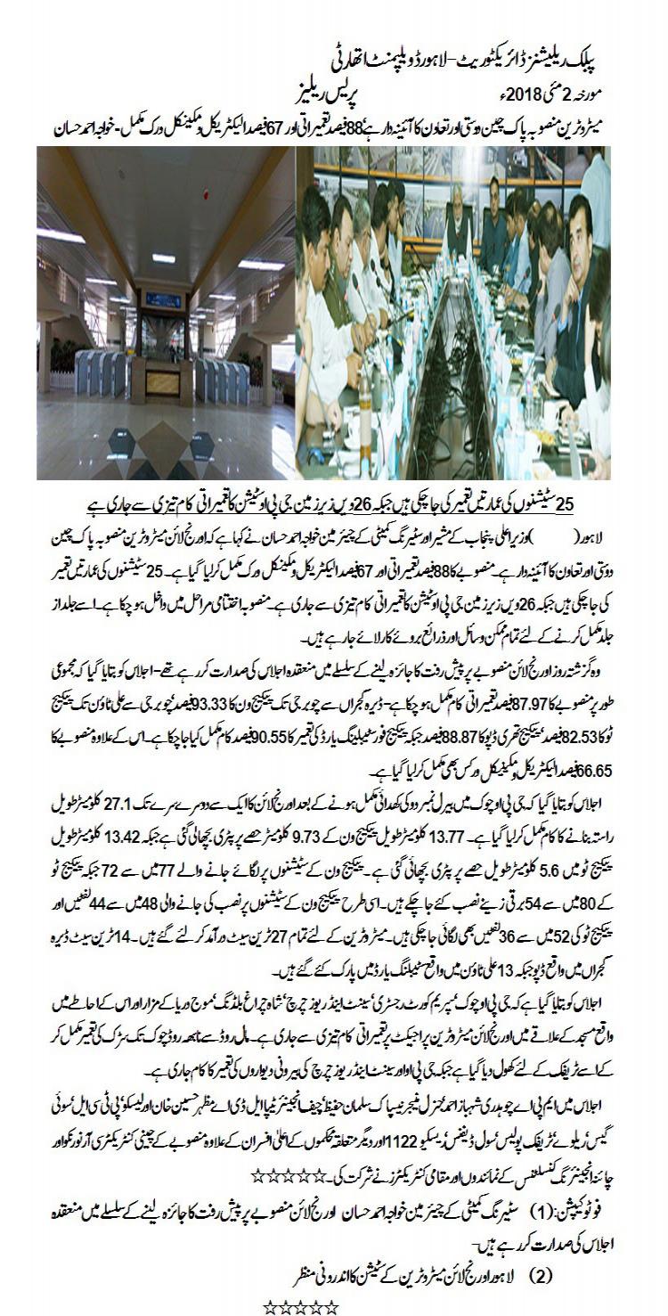 Lahore Orange Line Metro Train Project was being recognized internationally