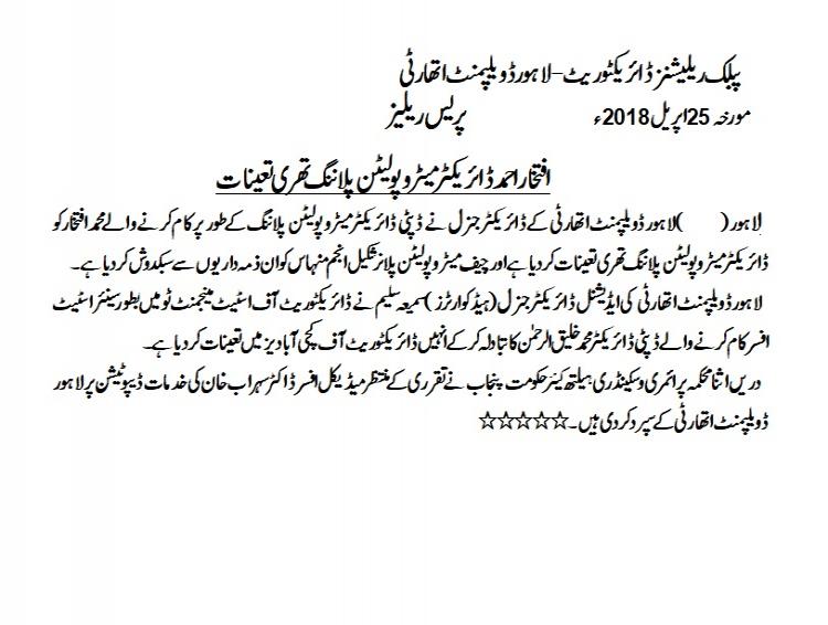 Iftikhar Ahmad Appointed as Director Metro Polynomic Planning.